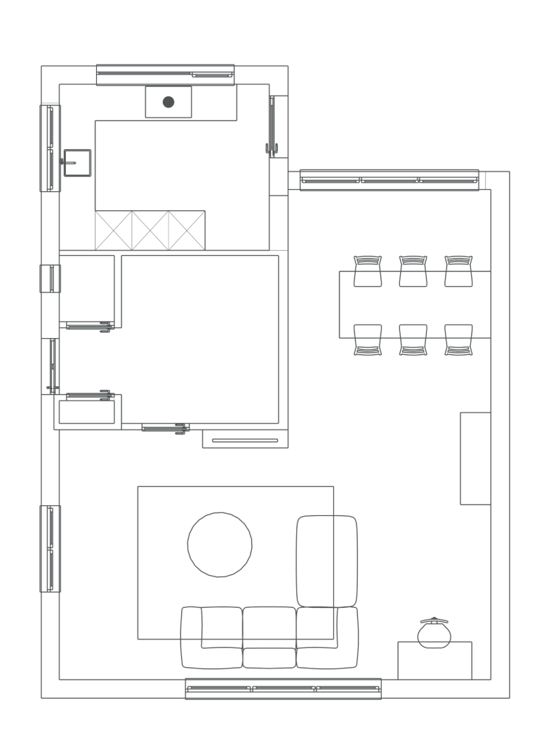 - Het meubelplan bevat heldere 2D-tekeningen van alle maatwerkonderdelen, zodat vakmensen precies weten wat er moet gebeuren. Voor het losse meubilair maak ik een concreet voorstel mét prijzenoverzicht – overzichtelijk en klaar om te bestellen.